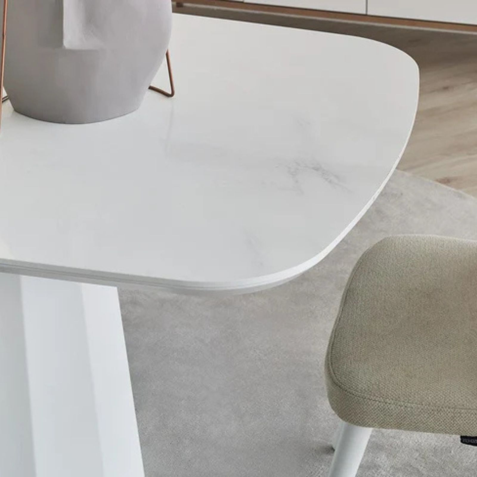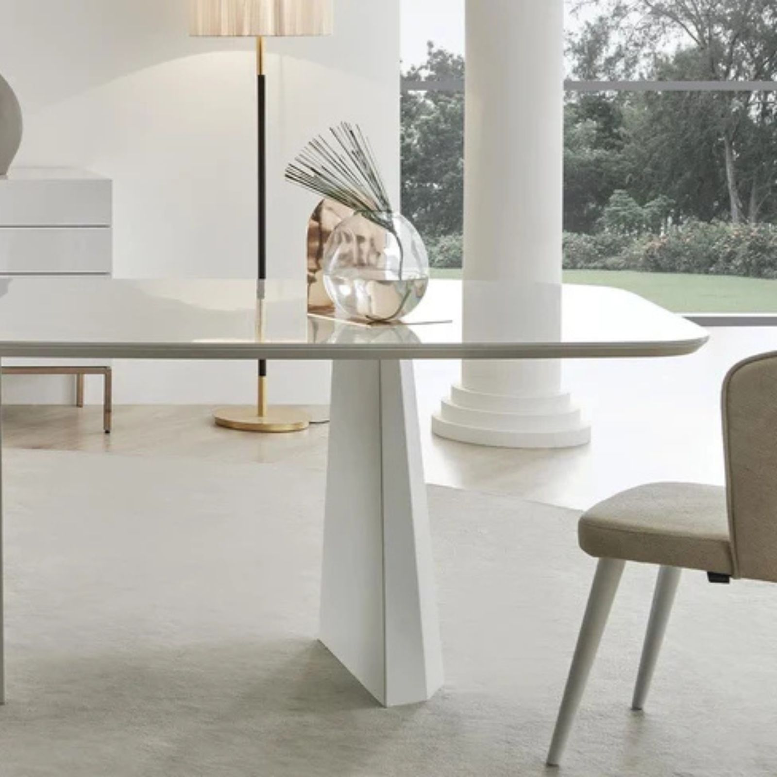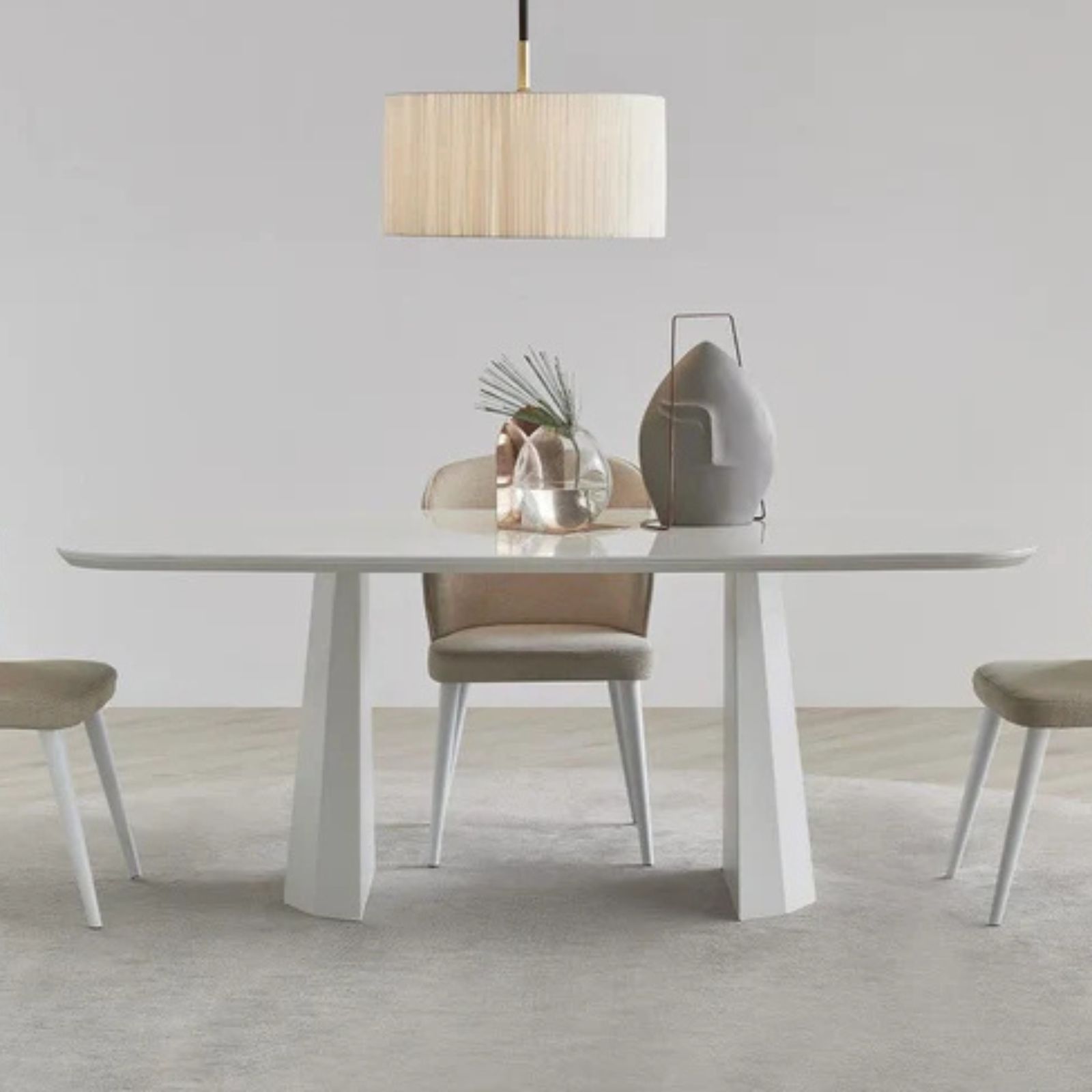 Inspirată de stilul monocrom, această masă pentru sufragerie se remarcă prin picioarele metalice cu design arhitectural distinct și prin suprafața cu aspect de marmură, contribuind la crearea unor spații elegante. Oferă confort pentru 6–8 persoane, fiind alegerea ideală pentru întâlniri și mese alături de familie sau prieteni.