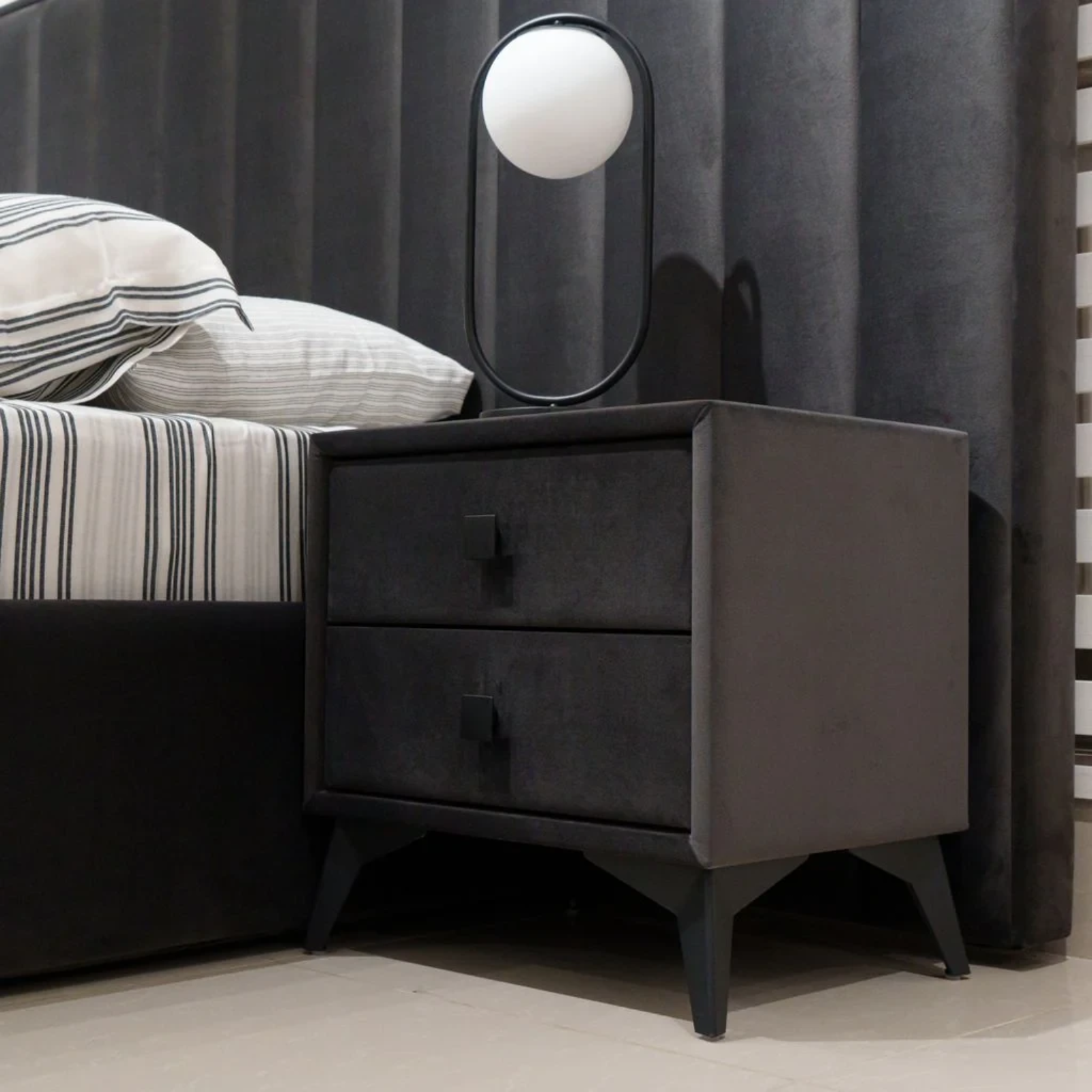 Noptiera Alberta este o piesă de mobilier cu personalitate, care îmbină funcționalitatea practică cu un design modern, ușor retro. Forma compactă, liniile clare și picioarele înălțate oferă un aspect aerisit și echilibrat, ideal pentru dormitoare contemporane. Cele două sertare generoase asigură spațiu suficient pentru depozitarea obiectelor esențiale, păstrând ordinea și confortul la îndemână. Disponibilă într-o varietate de culori și materiale, Noptiera Alberta se adaptează perfect stilului tău, aducând un plus de eleganță și funcționalitate zonei de dormit.