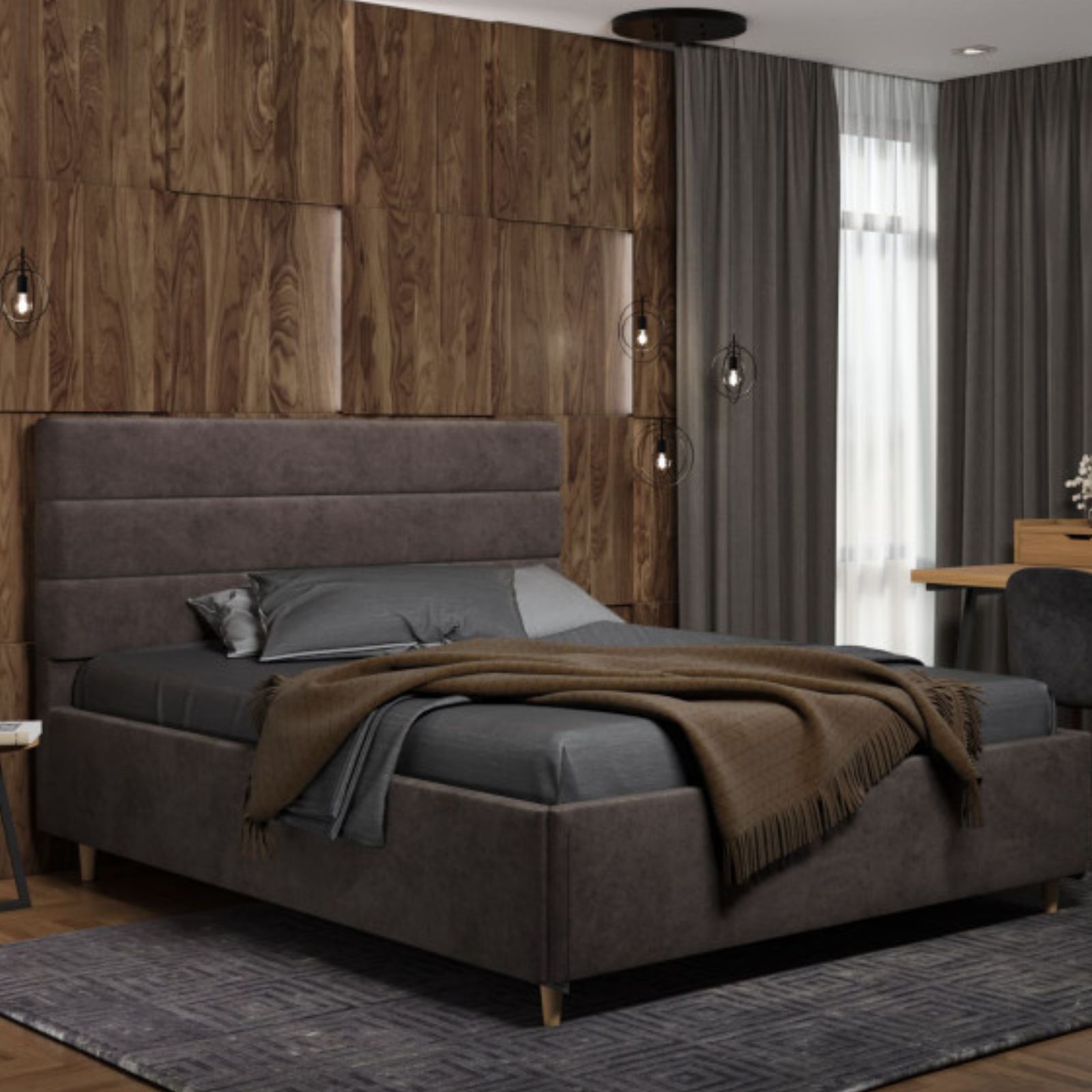 Una dintre caracteristicile cheie este varietatea de culori ale tapițeriei. Tăblia înaltă și masivă, cu o înălțime de 1200–1250 mm, nu doar că accentuează eleganța patului, ci oferă și confort atunci când stați jos sau vă odihniți.