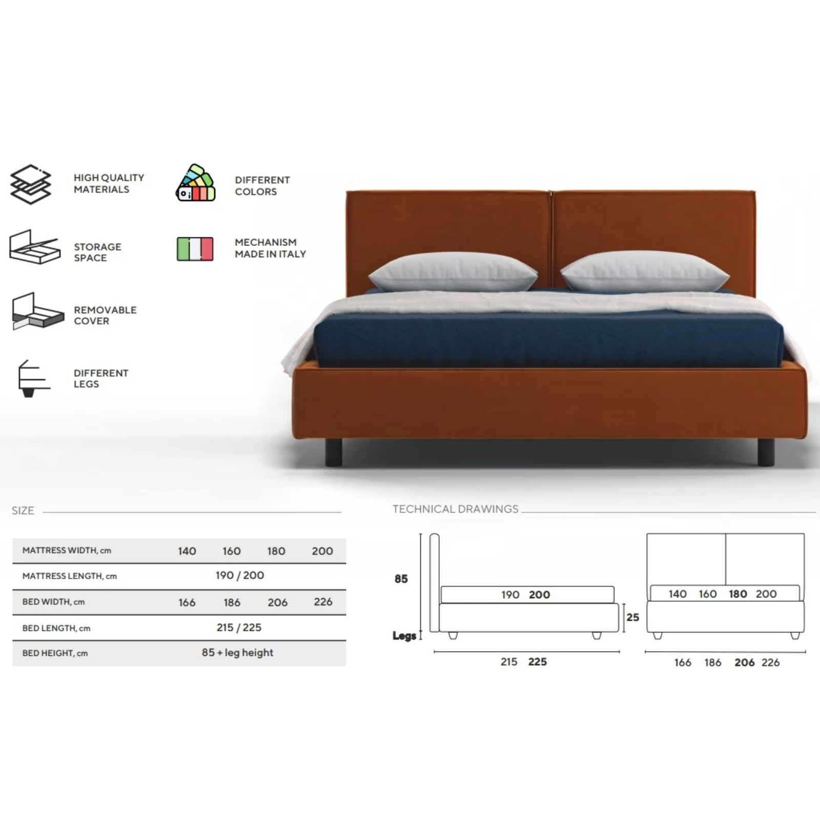 Lungime 190/200 - Adâncimea utilă a spațiului de depozitare: 15 cm