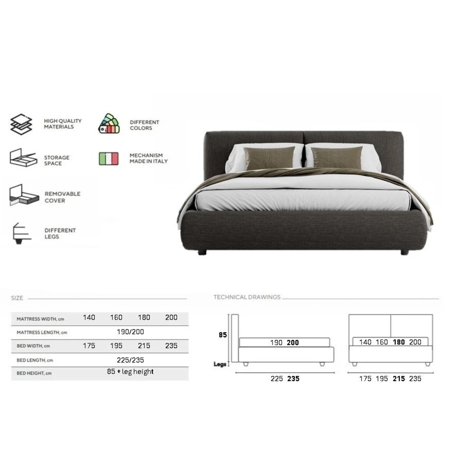 Lungime 190/200 - Adâncimea utilă a spațiului de depozitare: 15 cm;
