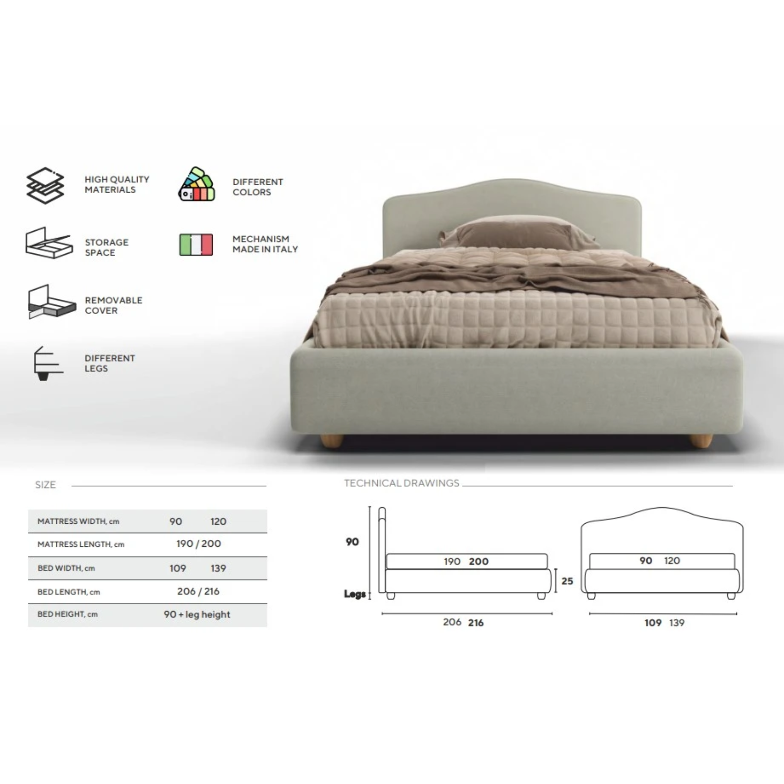 Lungime 190/200 - Adâncimea utilă a spațiului de depozitare: 15 cm;
