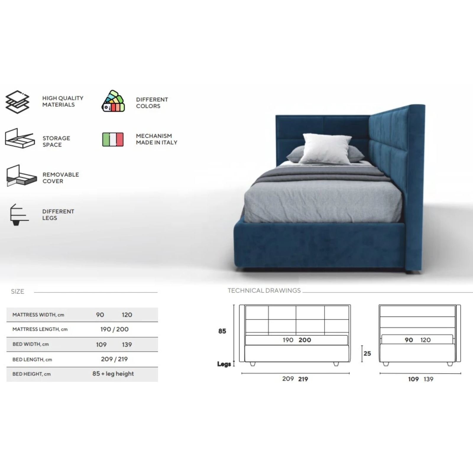 - Patul vine cu picioare standard Chrome de 5/8/10 cm (cilindrice din metal argintiu). Alte optiuni sunt contra cost.