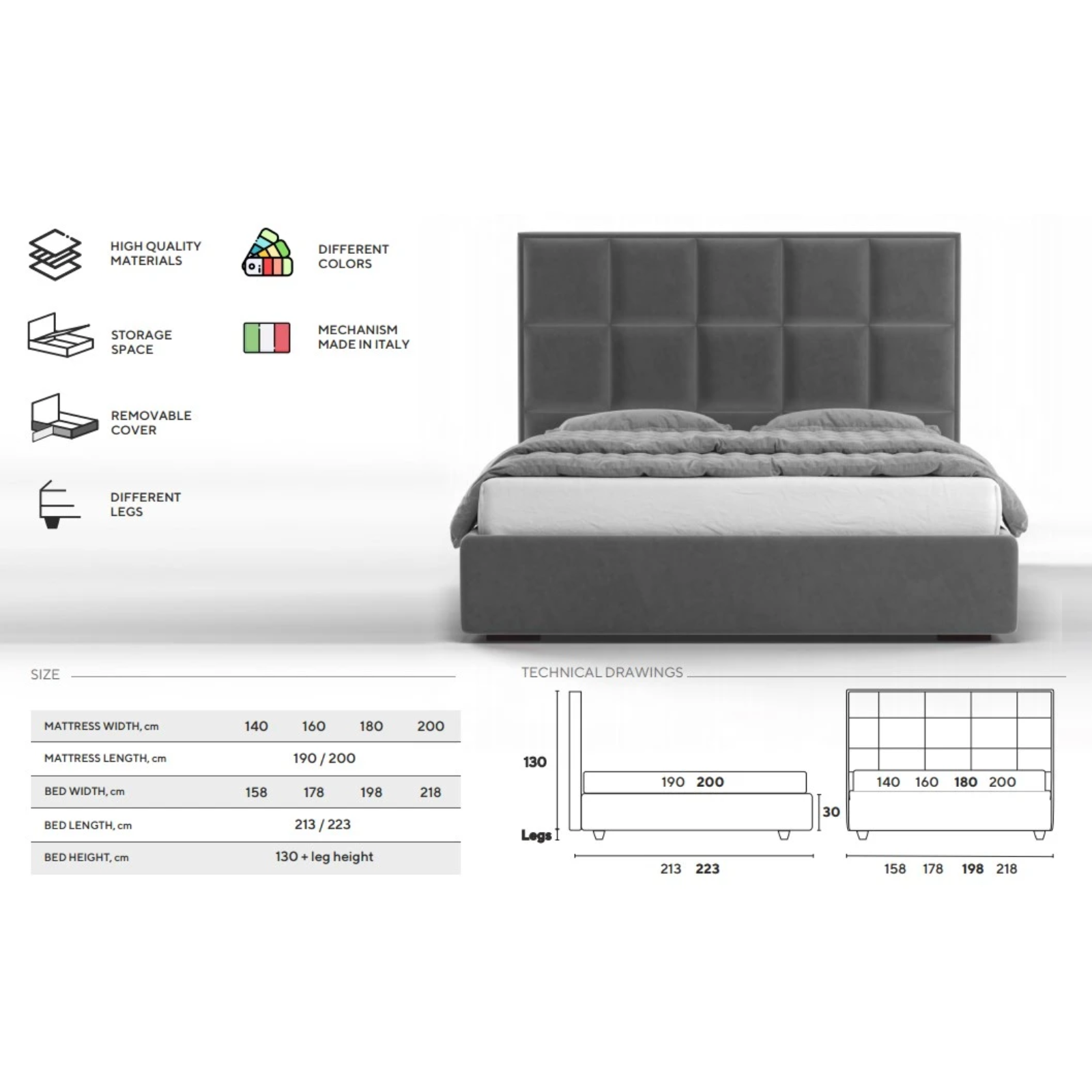 Patul Milano este caracterizat de un design modern și elegant, având o tăblie înaltă cu linii drepte și fine. Tăblia conferă un aspect minimalist, iar liniile curate adaugă un aer sofisticat și contemporan. Fabricat din materiale de calitate, acest pat se integrează perfect într-un decor modern, fiind atât confortabil, cât și estetic plăcut.