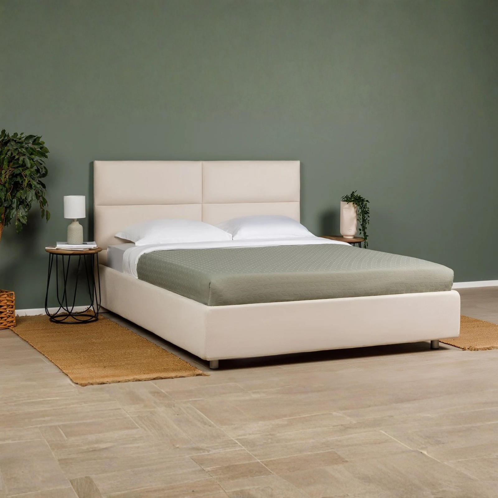 - Patul vine cu picioare standard Chrome de 5/8/10 cm (cilindrice din metal argintiu). Alte opțiuni sunt contra cost.