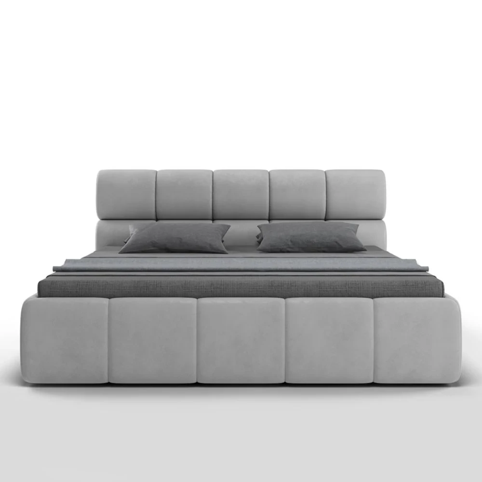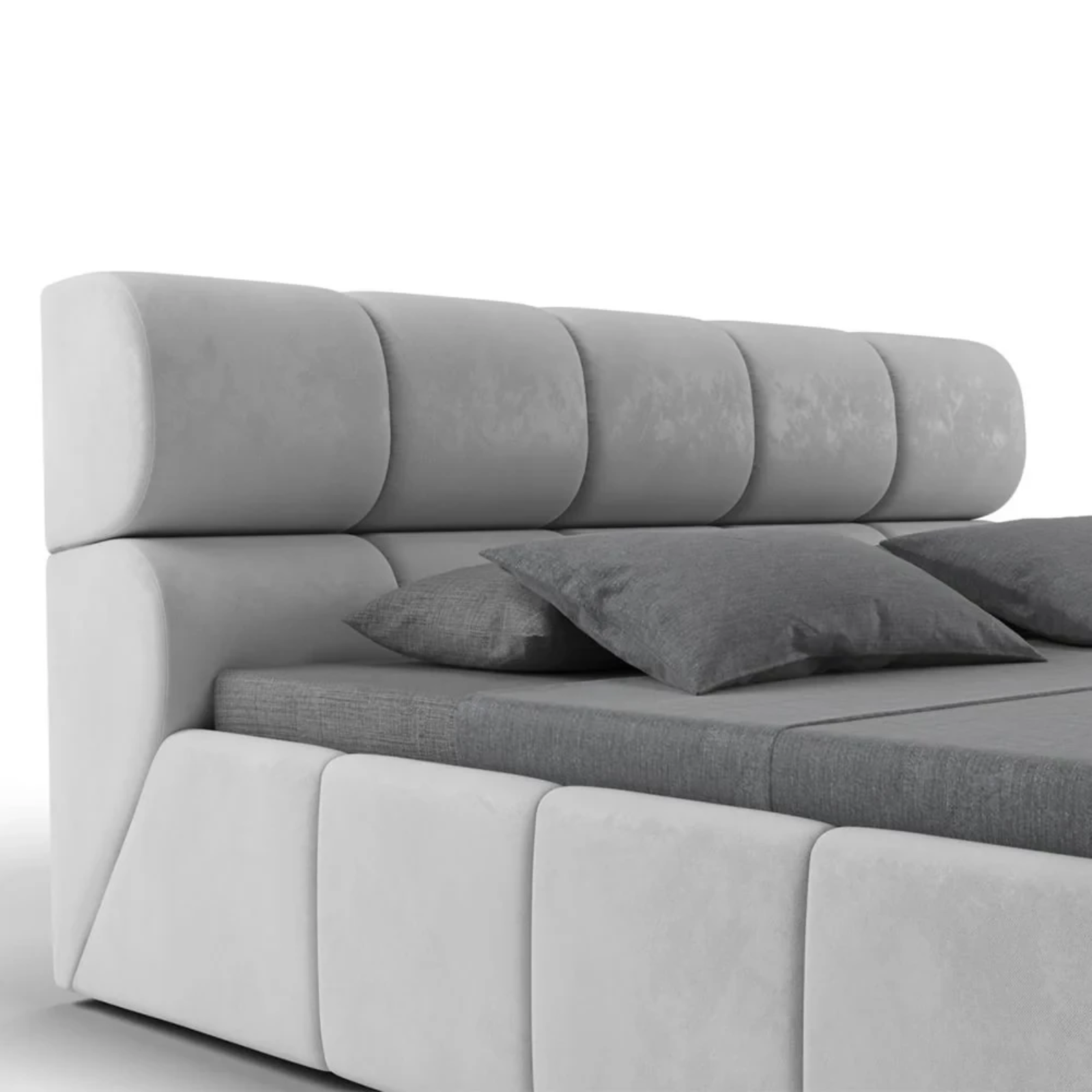 Patul Puff este o piesă de mobilier modernă și elegantă, care se remarcă prin confortul său extraordinar. Acesta are o tăblie și laterale moi și pufoase, oferind un aspect plin și plăcut la atingere, ideal pentru a crea o atmosferă relaxantă în dormitor.