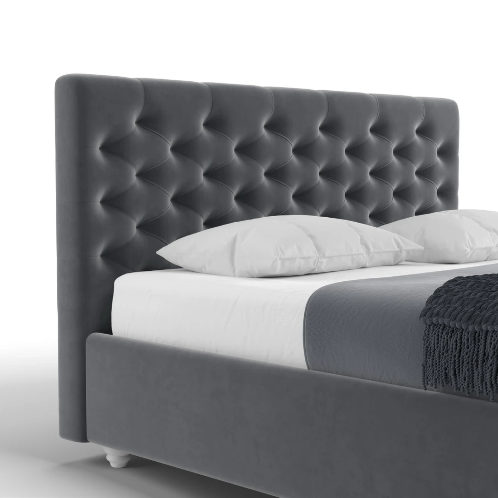 - Patul vine cu picioare standard Chrome de 5/8/10 cm (cilindrice din metal argintiu). Alte opțiuni sunt contra cost.