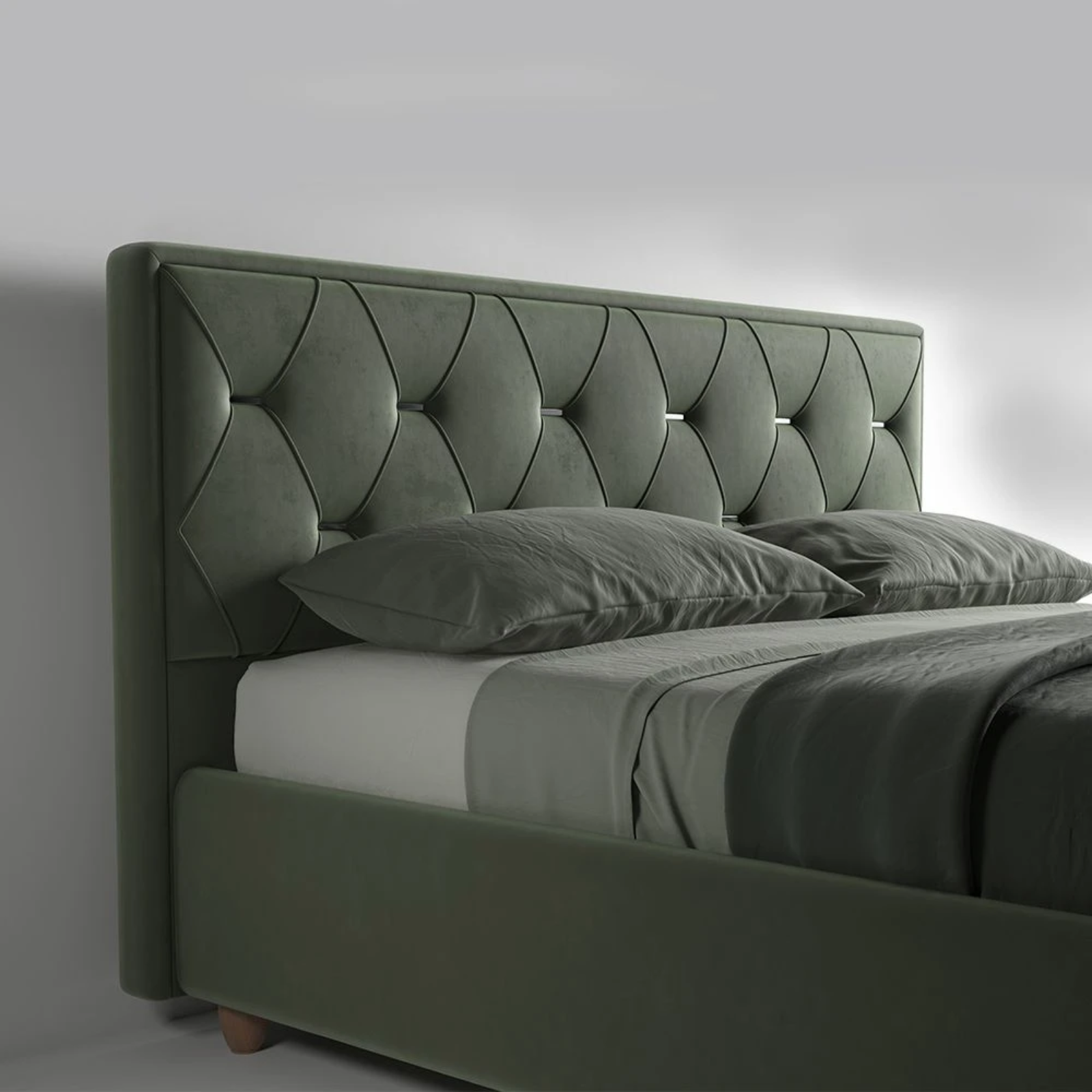 - Patul vine cu picioare standard Chrome de 5/8/10 cm (cilindrice din metal argintiu). Alte optiuni sunt contra cost.
