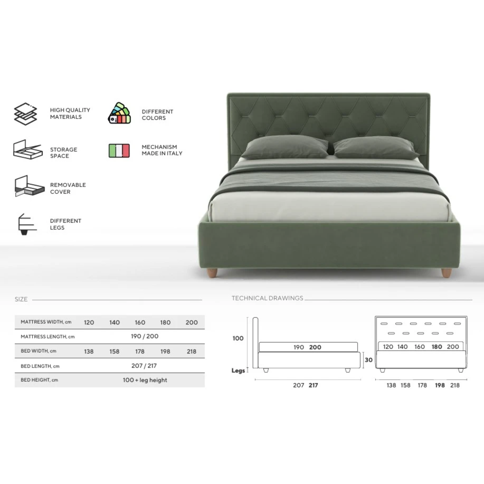 Lungime 190/200 - Adâncimea utilă a spațiului de depozitare: 15 cm;