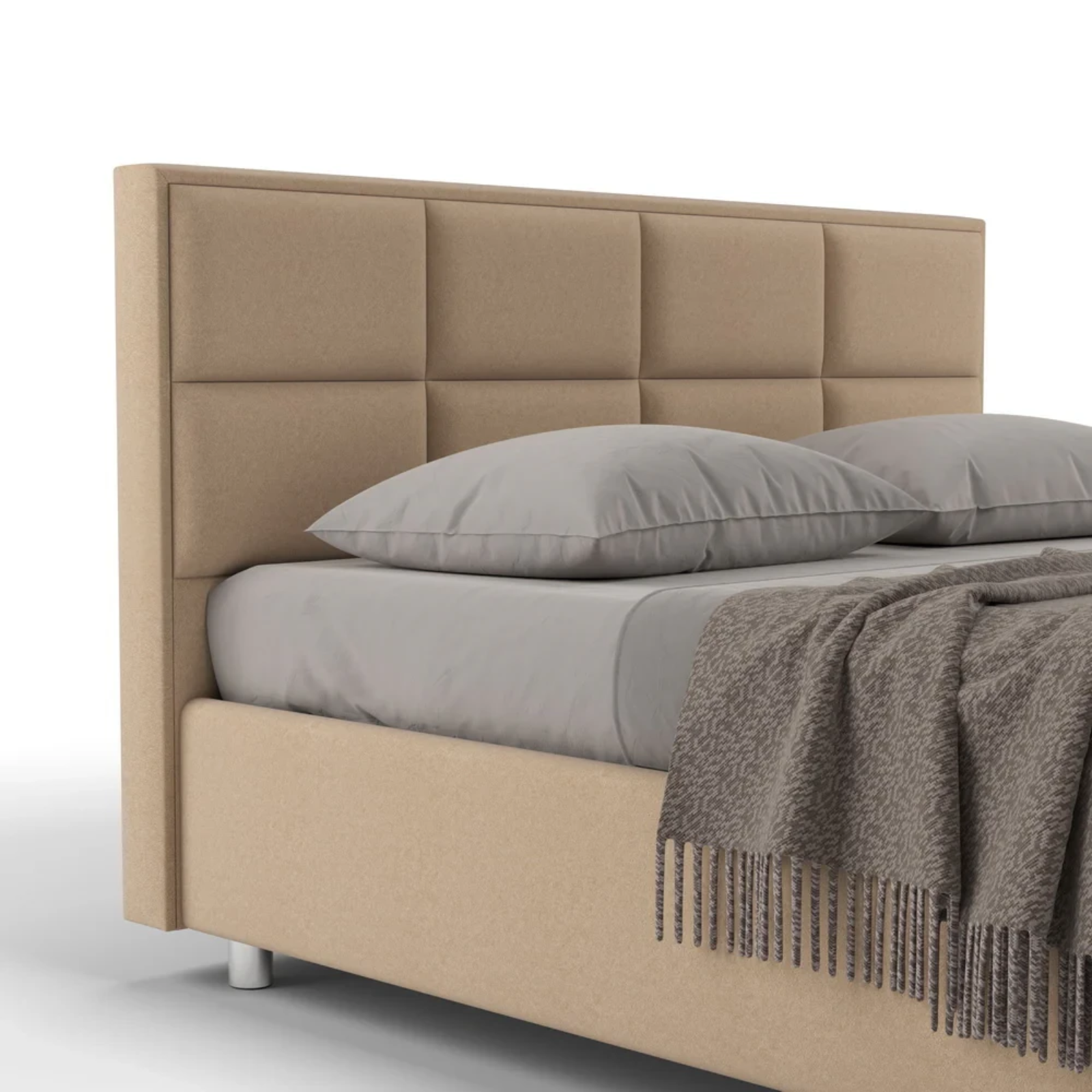 • Patul vine cu picioare standard Chrome de 5/8/10 cm (cilindrice din metal argintiu). Alte optiuni sunt contra cost.