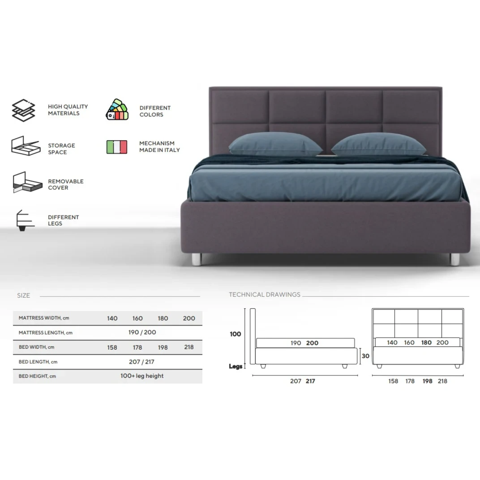 Patul Sienna este caracterizat de un design modern și elegant, având o tăblie cu linii drepte și fine. Tăblia conferă un aspect minimalist, iar liniile curate adaugă un aer sofisticat și contemporan. Fabricat din materiale de calitate, acest pat se integrează perfect într-un decor modern, fiind atât confortabil, cât și estetic plăcut.