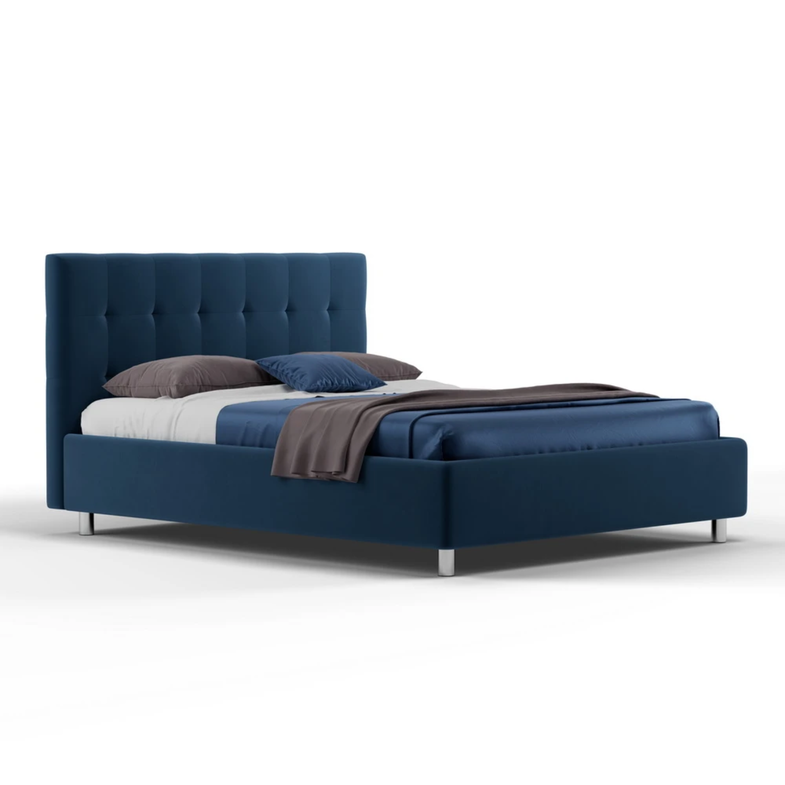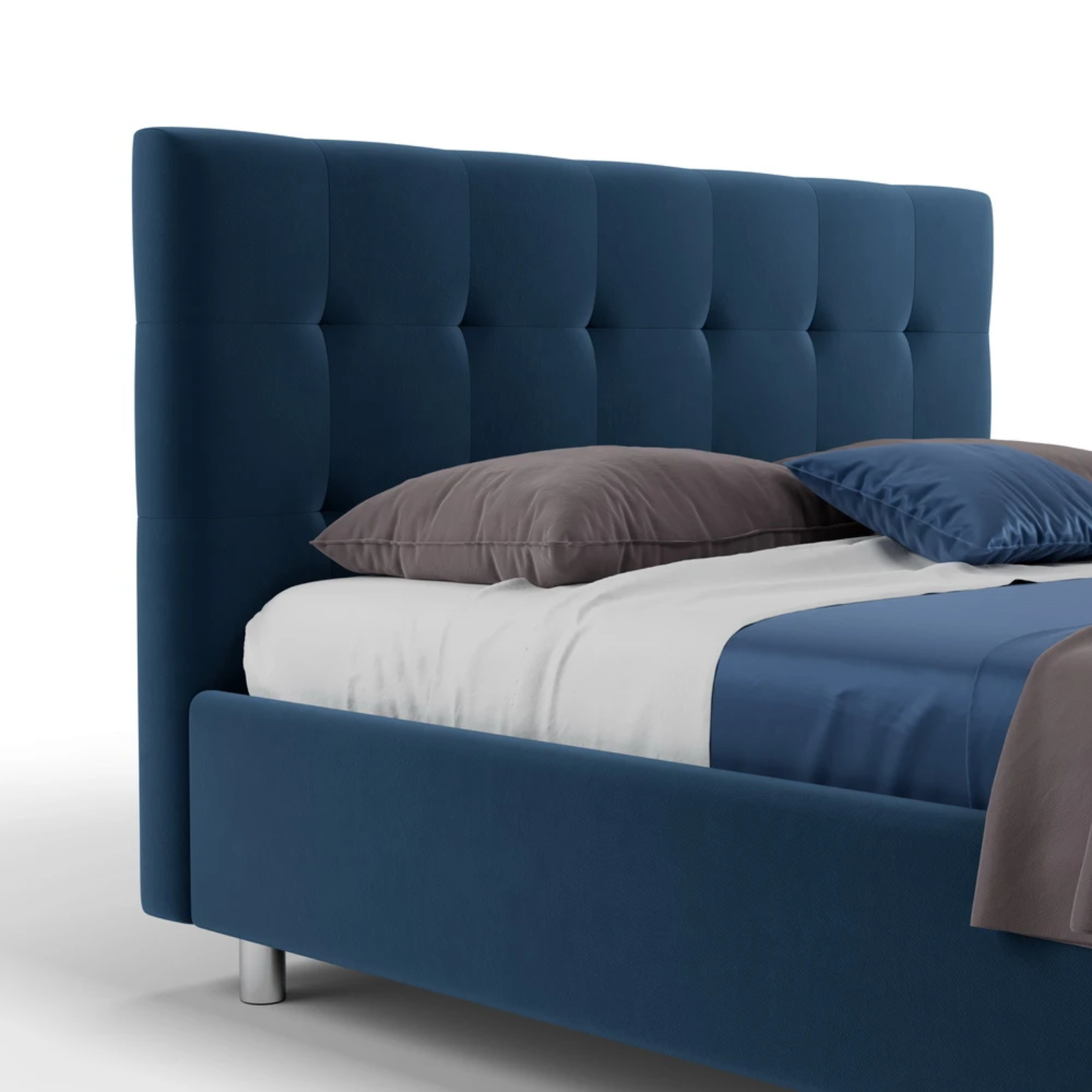 - Patul vine cu picioare standard Chrome de 5/8/10 cm (cilindrice din metal argintiu). Alte opțiuni sunt contra cost.