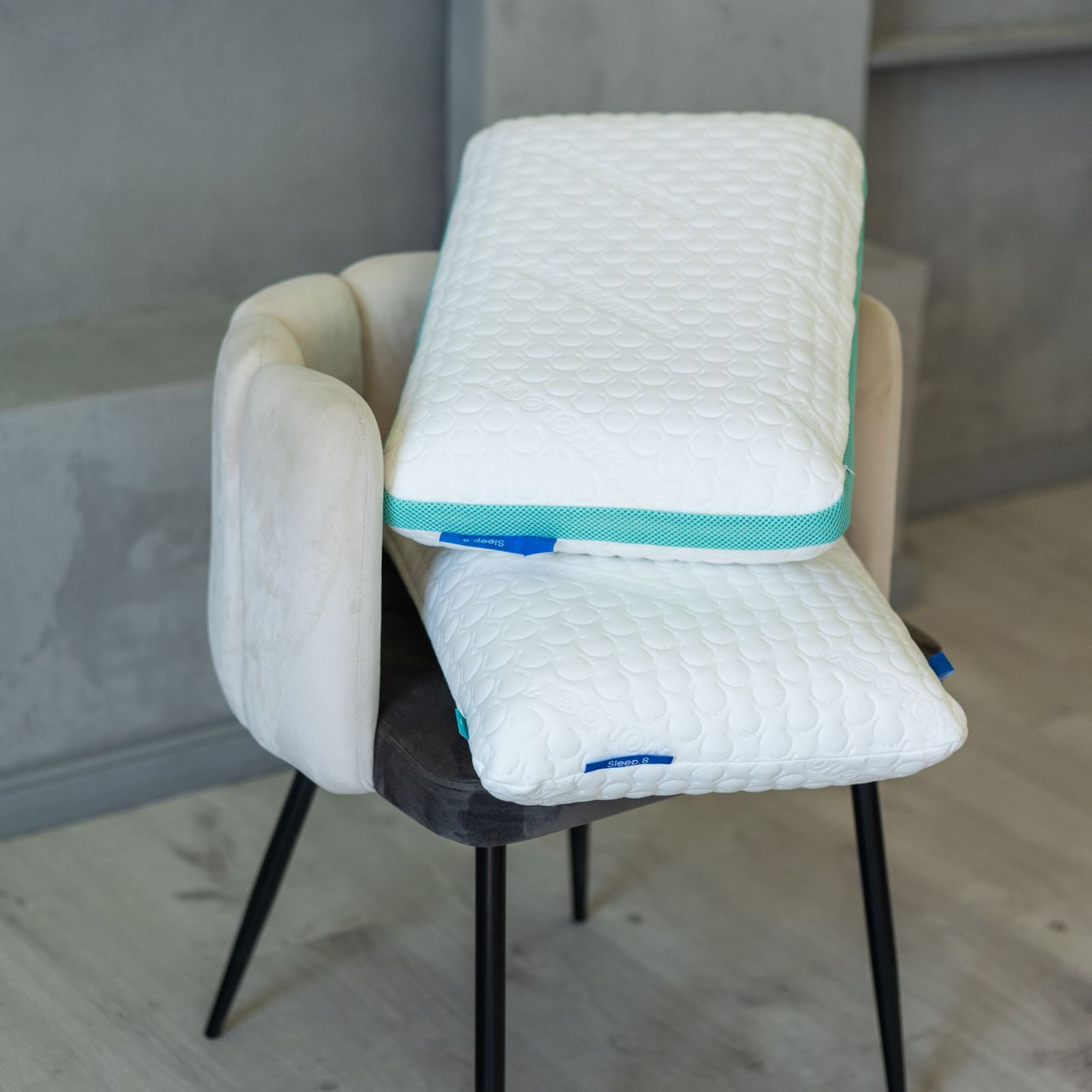 Perna anatomica din spumă Neo Taktile. Se conformează perfect formei capului și menține gâtul în poziția corectă în timpul somnului. Are efect de termoreglare, permeabilitate la aer și răcire.